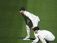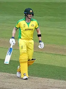 In the World Cup, Smith played a vital role as versatile batsman as he played in numerous batting positions from number three down to as a middle-order batsman. In Australia's opening match of the World Cup, against England, he was dismissed early on 5 but later improved as the tournament progressed. After making half centuries against Afghanistan, Sri Lanka and Pakistan, he later steered Australia into the final after making a century against India in the semi-finals at the Sydney Cricket Ground.[129] In the final, Australia drew against fellow neighbours New Zealand after defeating South Africa. Australia's target to chase 183 runs after a New Zealand collapse saw Steve Smith score 58 not out alongside the skipper, Michael Clarke as Australia won by 7 wickets with 101 balls remaining.[130] Smith was Australia's highest run scorer in the tournament, scoring 402 runs at an average of 67, including a century and four fifties.[131] He was named in the team of the tournament for the 2015 World Cup by the ICC.[132] He was also named in the team of the tournament by ESPNcricinfo and Cricbuzz.[133][134]