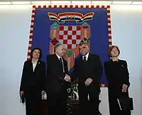Mesić improved Croatian foreign relations with Libya by exchanging visits with the Libyan leader Muammar al-Gaddafi, contrary to the wishes of U.S. and British diplomacy.[24]