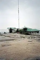 The short broadcast tower on the top of the mountain transmits two non-commercial stations: television station WGTV TV 8, and weather radio station KEC80 on 162.55 MHz. FM radio station WABE FM 90.1 was located on this tower from 1984 until 2005, when it was required to relocate to accommodate WGTV's digital conversion. W266BW FM 101.1 now has a permit as well. Atop the tower also sits the W4BOC amateur radio repeater, which operates on a frequency of 146.760 MHz. The tower is also used for the park's Project 25 two-way radio systems.[70][71]