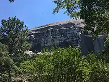 The mountain, which ranges in composition from quartz monzonite to granite and granodiorite, is more than 5 miles (8 km) in circumference at its base. The summit of the mountain can be reached by a walk-up trail on the west side of the mountain or by the Skyride aerial tram.