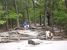 Walk Up Trail is a 1.3-mile (2.1 km) trail to the top of Stone Mountain ascending 786 ft (240 m) in elevation to a height of 1,686 ft (514 m). The trail is steep, but spectacular panoramic views and cool winds await hikers at the top.
