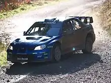 After the summer break, the team was joined at the 2007 Rally Finland by Xavier Pons and co-driver Xavier Amigo, driving a third car, #25, not nominated for manufacturer points.[78] However, in the rally, Solberg had to retire on day two, after monstrous handling and steering problems which the team engineers were unable to deal with.[79][80] Solberg finished fifth in Ireland, calling it "the most difficult rally he has ever done."[81] At the final event of the season, Wales Rally GB, Solberg won the battle for fourth with Dani Sordo, propelling Subaru to third place in the manufacturer's standings.[82] In the driver's championship, Solberg came in 5th, while Atkinson took 7th.[83] Richard Taylor called the season a "poor" one, with Subaru only achieving two podium finishes, and no overall wins for the second year in a row.[71][83] Phil Mills called it the "second season from hell."[84]