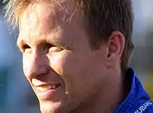 For the 2003 season, the driver line-up remained unchanged from the previous year. Solberg drove the #7 car, Mäkinen the #8 car. The season got off to a poor start, with neither driver finishing the Rallye Monte Carlo.[53] Solberg then scored four outright wins, in Cyprus, Australia, France, and finished the season with his second straight win in Britain, securing him the Driver's Championship for himself and co-driver Phil Mills, narrowly beating Sébastien Loeb by one point.[54][53][55] The team only managed to achieve third place in the manufacturers' championship, beaten by Citroën and Peugeot.[53][56] At the end of the season, Tommi Mäkinen retired from the WRC.[51]