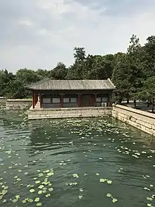 - Kuoru Pavilion (廓如亭; Kuòrútíng): Situated in the middle of the eastern dam, east of the 17 Openings Bridge. It covered an area of 130 m2 (1,400 sq ft).