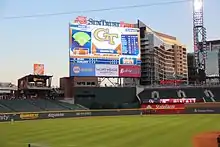 On July 8, 2015, the Braves announced an agreement for Atlanta-based Gas South to remain the official natural gas partner at Truist Park. Under the agreement, Gas South will receive prominent signage in the new ballpark, including a 75-foot (23 m) long "Bring the Heat" LED board in left field that will display pitching statistics and fan-friendly messaging throughout the game.[35]
