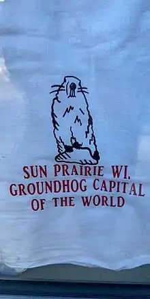 Sun Prairie's Jimmy the Groundhog is the local favorite on Groundhog Day in February.[57] The United States Congressional Record described the city as the "Groundhog Capital of the World" in 1955.[58] During the city's Groundhog Day celebration on February 2, 2015, Jimmy bit Mayor Jonathan Freund's ear.[59] The next day, Freund issued a proclamation that pardoned and absolved Jimmy "of any perceived wrongdoing and charges" under the city's ordinances.[60] Two weeks later, Freund came in last of three candidates in the city's mayoral primary election.[61] Following the biting incident, the United States Department of Agriculture and the Wisconsin Department of Natural Resources declared that capturing wild animals for exhibit was against the law.[62][63] Sun Prairie's next Groundhog Day celebration on February 2, 2016, featured a caged groundhog purchased for $1,200.[63][64]