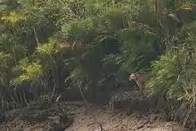Cyclone Amphan made landfall near Sagar Island of South 24 Parganas district on 20 May 2020. Lives have been lost and damage has been meted out to infrastructure.[17] The cyclone damaged "almost the entire nylon fencing" in the forest which prevents the tigers from entering the forest-fringe villages, thereby keeping a check on the man-animal conflict. Besides the fencing, the cyclone also damaged "dozens of forest camp offices, tents, watch towers and staff quarters".[18] The West Bengal Forest Department were initially apprehensive about tigers being harmed or killed by the cyclone but the post cyclone patrolling revealed no dead bodies of the tigers and instead offered glimpses of the animals roaming around in the forest.[19]