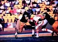 In the mid to late 1970s, the Steelers became the first NFL dynasty of the post-merger era by winning four Super Bowls (IX, X, XIII, and XIV) in six years. They were led by head coach Chuck Noll, the play of offensive stars Terry Bradshaw, Franco Harris, Lynn Swann, John Stallworth, and Mike Webster, and their dominant "Steel Curtain" defense, led by "Mean" Joe Greene, L. C. Greenwood, Ernie Holmes, Mel Blount, Jack Ham, and Jack Lambert. Many of the team's key players were selected in the 1974 draft, in which Pittsburgh selected four future Hall of Famers, the most for any team in any sport in a single draft. A fifth player, Donnie Shell, was signed by Pittsburgh after going unselected in the 1974 NFL Draft; he too was later enshrined in the Hall of Fame.[14] The Steelers were the first team to win three and then four Super Bowls and appeared in six AFC Championship Games during the decade, making the playoffs in eight straight seasons. Pittsburgh still remains the only team to win back-to-back Super Bowls twice and four Super Bowls in a six-year period.