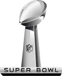 ![]() The Super Bowl logo used since Super Bowl XLV in 2011 showcasing the Vince Lombardi Trophy. Since Super Bowl XLV, the Roman numeral of the game has been featured alongside the trophy, with the exception of Super Bowl 50, with the logo decorated in different colors for each year. | |