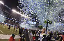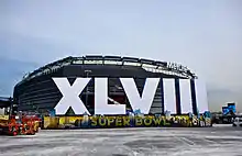 New York City ultimately bid in 2005 for a Super Bowl. The NFL voted on March 23, 2005 to award New York City the rights to host 2010's Super Bowl XLIV, contingent on the proposed West Side Stadium (the planned site of the game) being completed by 2008.[31] In August 2005, after New York state government officials declined to approve $400 million for the stadium, the NFL decided to revoke New York City's hosting rights, and reopen the bidding for the game's site.[32]