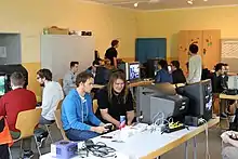 Sakurai stated that the development team had suggested characters from four other games to represent the Famicom/NES era, until the developers eventually chose the Ice Climbers to fulfill this role.[31] Additionally, Ayumi Tachibana from Famicom Detective Club was considered as a playable character, but was ultimately relegated to a cameo role as a trophy.[32][33] The developers have noted characters that have very similar moves to each other on the website;[34] such characters have been referred to as "clones" in the media.[35]