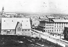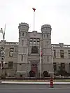 On the eve of Confederation, Rideau Hall, which was built by McKay, was leased to the government of Canada West in 1865 before being bought outright in 1867.[51] This, along with John A. Macdonald's home Earnscliffe, would establish Sussex Street as the heart of the new capital of Canada.[note 1][6][25] By this time, several of the non-governmental institutions were established along the street, including Ottawa General Hospital (now Élisabeth Bruyère Hospital),[12] Bytown College (now La Salle Academy),[29] Notre-Dame Cathedral,[31] the Former Geological Survey of Canada Building,[38] the Revere Hotel,[36] and what is now 24 Sussex Drive.[16] These buildings, as well as houses, shops and hotels, were built following the passage of the Vesting Act in 1843, which subdivided the land in Lower Town, as well as the arrival of the railway in 1854.[43][52] The ByWard Market was subsequently established over the next half century.[43] During the early 1900s, several notable government institutions were built along Sussex Street, including the Dominion Archives in 1906 (later the Canadian War Museum, now the Global Centre for Pluralism), the Royal Canadian Mint in 1908,[53] and the Connaught Building in 1915.[39] The Daly Building, which opened as a department store in 1905, was purchased by the government in 1921; it was demolished in 1991 after standing vacant for several years.[54]