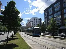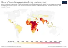 Today, 55 percent of the world is estimated to be living in urban areas and the United Nations estimates that by the year 2050, that number will rise to 70 percent.[9] By 2050, there may be nearly 2.5 more billion individuals living in urban cities, possibly making it more difficult to create more sustainable communities.[10] These large communities provide both challenges and opportunities for environmentally-conscious developers. There are distinct advantages to further defining and working towards the goals of sustainable cities. Humans thrive in urban spaces that foster social connections. Richard Florida, an urban studies theorist, focuses on the social impact of sustainable cities and states that cities need more than a competitive business climate; they should promote a great people climate that appeals to individuals and families of all types. Because of this, a shift to denser urban living would provide an outlet for social interaction and conditions under which humans can prosper. These types of urban areas would also promote the use of public transit, walkability and biking which would benefit citizens' health as well as benefiting the environment.[11][12]