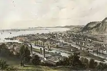 The city expanded rapidly in the 18th and 19th centuries, and was termed "Copperopolis".[17] From the late 17th century to 1801, Swansea's population grew by 500%—the first official census (in 1841) indicated that, with 6,099 inhabitants, Swansea had become significantly larger than Glamorgan's county town, Cardiff, and was the second most populous town in Wales behind Merthyr Tydfil (which had a population of 7,705). However, the census understated Swansea's true size, as much of the built-up area lay outside the contemporary boundaries of the borough; the total population was actually 10,117. Swansea's population was later overtaken by Merthyr in 1821 and by Cardiff in 1881, although in the latter year Swansea once again surpassed Merthyr.[17] Much of Swansea's growth was due to migration from within and beyond Wales—in 1881 more than a third of the borough's population had been born outside Swansea and Glamorgan, and just under a quarter outside Wales.[25]