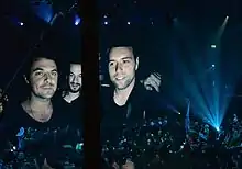 ![]() Swedish House Mafia in 2011. From left to right: Sebastian Ingrosso, Axwell, Steve Angello | |