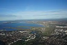The land used for the airport had been a bullock paddock, with a lot of the area around Mascot being swampy.[10] Flights had been taking off from at least 1911 from these fields, with aviators using other Sydney locations like Anderson Park and Neutral Bay for a few years prior.[11] Nigel Love, who had been a pilot in the First World War, was interested in establishing the nation's first aircraft manufacturing company. This idea would require him to establish a factory and an aerodrome close to the city. A real estate office in Sydney told him of some land owned by the Kensington Race Club that was being kept as a hedge against its losing its government-owned site at Randwick. It had been used by a local abattoir which was closing down, to graze sheep and cattle. This land appealed to Love as the surface was perfectly flat and was covered with a pasture of buffalo grass. The grass had been grazed so evenly by the sheep and cattle that it required little to make it serviceable for aircraft. In addition, the approaches on all four sides had no obstructions, it was bounded by Ascot Racecourse, gardens, a river, and Botany Bay.