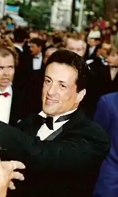 Stallone next appeared in John Landis' period comedy Oscar which was both a critical and box-office failure.[62] In 1992, he appeared in Roger Spottiswoode's action comedy Stop! Or My Mom Will Shoot[63] which was also both a critical and box-office disaster. Stallone signed onto the film based on rumors that Schwarzenegger was interested in the lead. Schwarzenegger said that, knowing the script's quality was poor, he publicly faked interest in starring for producers to lure Stallone.[53]