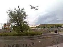 On July 17, 2012, the fifth anniversary of the accident, a plaza named Memorial Square was opened. Memorial Square was built on the site of the TAM express warehouse (demolished on August 5, 2007), which is 8,318 square metres (89,530 sq ft) in area.[56] There is a memorial with the names of the victims engraved as well as a mulberry tree that survived the crash.[57] There is another memorial in Porto Alegre called "Largo da Vida," where 199 trees have been planted. The memorial is located near Salgado Filho International Airport (the airport from which Flight 3054 departed).[58]