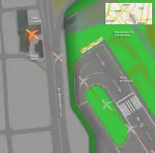 On both of Congonhas Airport's runways (35L/17R and 35R/17L), a slope prevented the drainage of accumulated water on the asphalt. The surface was already smooth due to the excess rubber caused by tire pressure during landing.[10] There were no runway end safety areas, as Avenida Washington Luís (a busy avenue), as well as several buildings and houses, were located at the end of runways 35L and 35R. On July 24, 2006, less than a year before the accident, a Boeing 737 of BRA Transportes Aéreos had difficulty stopping on runway 35L, but the pilots were able to bring the aircraft to a stop safely by performing a ground loop.[11] Due to delays and flight cancellations caused by rains in early 2007, Infraero (the company that manages Congonhas Airport) decided to resurface the airport's main runway. The installation of channeling grooves was planned to reduce the risk of hydroplaning.[12][11] The resurfacing works were completed on June 29, but the grooves were not added. Infraero stated that adding the grooves would require an additional 30 days. Despite the incomplete refit, the Congonhas runway remained open for use during the 2006–07 Brazilian aviation crisis.[11]