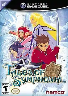 Tales of Symphonia[lower-alpha 2] is an action role-playing video game developed by Namco Tales Studio and published by Namco for the GameCube. The fifth main installment of the Tales series, it was released in Japan on August 29, 2003, in North America on July 13, 2004 and in Europe on November 19, 2004.[1] In Japan, the game was ported for the PlayStation 2 with additional content and was released on September 22, 2004.[2]