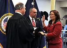 In 2009, two Illinois Department of Veterans Affairs employees at the Anna Veterans' Home in Union County filed a lawsuit against Duckworth.[44] The lawsuit alleged that she wrongfully terminated one employee and threatened and intimidated another for bringing reports of abuse and misconduct of veterans when she was head of the Illinois Department of Veterans Affairs.[45] Duckworth was represented in the suit by the Illinois Attorney General's office.[46] The case was dismissed twice but refilings were allowed.[47][48] The case settled in June 2016 for $26,000 with no admission of wrongdoing.[47] The plaintiffs later indicated they no longer wanted to settle, but the judge gave them 21 days to sign the settlement and canceled the trial.[49][50]