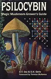 McKenna, along with his brother Dennis, developed a technique for cultivating psilocybin mushrooms using spores they brought to America from the Amazon.[16][26][27][31] In 1976, the brothers published what they had learned in the book Psilocybin: Magic Mushroom Grower's Guide, under the pseudonyms "O.T. Oss" and "O.N. Oeric".[12][33] McKenna and his brother were the first to come up with a reliable method for cultivating psilocybin mushrooms at home.[12][17][26][27] As ethnobiologist Jonathan Ott explains, "[the] authors adapted San Antonio's technique (for producing edible mushrooms by casing mycelial cultures on a rye grain substrate; San Antonio 1971) to the production of Psilocybe [Stropharia] cubensis. The new technique involved the use of ordinary kitchen implements, and for the first time the layperson was able to produce a potent entheogen in his [or her] own home, without access to sophisticated technology, equipment, or chemical supplies."[34] When the 1986 revised edition was published, the Magic Mushroom Grower's Guide had sold over 100,000 copies.[12][33][35]