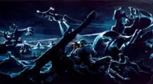 Terminator Salvation is the fourth installment of the Terminator film series and was made by The Halcyon Company and distributed by Warner Bros. Pictures and Columbia Pictures. It was released on May 21, 2009 to mixed reviews and grossed $371.4 million. It was written by John Brancato and Michael Ferris, directed by McG,[27] and stars Christian Bale as John Connor and Sam Worthington (who was personally recommended by James Cameron[28]) as Marcus Wright.[29] Following the events of Terminator 3: Rise of the Machines, after Skynet has destroyed much of humanity in a nuclear holocaust, John struggles to become the leader of humanity as he is destined, while Marcus Wright finds his place in an unfamiliar post-apocalyptic world. In this future, altered by the events of the second film, the T-800 Terminators (Roland Kickinger with CG-rendered facial likeness of Arnold Schwarzenegger[30]) are coming online sooner than expected. The film also stars Anton Yelchin as Kyle Reese,[31] Bryce Dallas Howard, Moon Bloodgood, Common, Michael Ironside and Helena Bonham Carter.