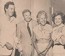 Sanford received Seawell's endorsement and the quiet backing of Governor Hodges. He also cultivated a strong campaign organization—bolstered by the connections he had made during Scott's 1954 Senate campaign—and garnered the support of labor unions and education lobbyists.[68] His network included former Scott supporters, Jaycees, and Young Democratic Clubs;[69] he avoided relying on the traditional courthouse cliques.[70] Winston-Salem businessman Bert Bennett, Sanford's friend and former classmate at UNC-Chapel Hill, provided critical leadership to his campaign and lined up key support behind him.[71] Sanford was also innovative in the use of media consultants and polling data,[72] being the first North Carolinian gubernatorial candidate to hire a pollster and prolifically use television advertisements.[73] He ran as a progressive, but tried to avoid being labeled too liberal on issues of race. Businessmen and professionals who feared that Lake's positions on race would be unfavorable to North Carolina's economy backed Sanford.[68] Sanford ultimately won the June 27 Democratic primary with a large lead, earning 352,133 votes in contrast to Lake's 275,905.[74][lower-alpha 3]