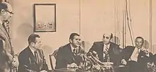 In March 1949 Scott surprised many Democrats when he appointed liberal UNC President Frank Porter Graham to fill a vacant U.S. Senate seat.[39] Graham's seat was subject to a special election in 1950. In the Democratic primary he was challenged by conservative Willis Smith. Sanford was friends with Smith's son and respected him, but admired Graham and was "all out" for him. As YDC president, he had to keep his public stance on the primary neutral, though Smith's campaign accused him of showing his favoritism.[40] Graham won a plurality of the vote in the first primary, and Smith called for a runoff election.[41] The campaign then took on racial overtones, as Smith's supporters attacked Graham for his support of civil rights.[42] Sanford wanted to improve Graham's support in Cumberland County, and approached Graham's local campaign manager to ask for a precinct he could canvass. He then took a job working in the Cumberland Mills area south of Fayetteville.[43] During this time he kept a notebook where he jotted down lessons he was learning from campaigning. Of the 25 to 30 pages he filled, Sanford reflected, "I learned one thing. That is, don't ever let them get off the defensive. Frank Graham let them get off the defensive. He was just so nice and sweet."[44] Graham won the Cumberland Mills precinct but lost the statewide primary.[45] Sanford shortly thereafter visited Graham and vowed "to get even, to rectify that injustice."[44]