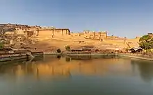 Principal photography began on 10 October 2010 in India.[8] Most of the filming took place in the Indian state of Rajasthan, including the cities of Jaipur and Udaipur.[9] In Jaipur, filming took place around the City Palace, the Marigold market, and on crowded buses. Other scenes were shot in Kishangarh, and on the outskirts of Jaipur, footage was shot at Kanota Fort, which stood in for the Viceroy Club. The place where Sonny and Sunaina meet in the film was shot nearby at the stepwell Panna Meena ka Kund near Amer Fort, a 10th-century establishment noted for its "ten stories of pale golden stone steps."[10][11][12] Ravla Khempur was chosen as the site for the Best Exotic Marigold Hotel; it is an equestrian hotel that was originally the palace of a tribal chieftain, located about an hour and a half outside of Udaipur in the village of Khempur.[9] Madden considered the building to have a magical quality and unmistakable charm, remarking that it had "something special that could ultimately draw the characters in. It had these wonderful cool dark interiors, with glimpses of saturated light and the teeming life outside its walls."[10] Production designer Alan MacDonald, who won Best Art Direction in a Contemporary Film from the Art Directors Guild for his work,[13] was brought in to embellish the interiors, intentionally making it clash with "interesting furniture inspired by colonial India, mismatched local textiles, all mixed together with modern plastic bits and pieces, with everything distressed and weather beaten."[10] Footage was also shot at the Lake Palace Hotel at Lake Pichola.[9]