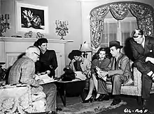 In the novel, Geiger is selling pornography – then illegal and often associated with organized crime – and is a homosexual having a relationship with Lundgren. Carmen is described as being nude in Geiger's house and later nude and in Marlowe's bed. The sexual orientation of Geiger and Lundgren goes unmentioned in the film because explicit references to homosexuality were prohibited.[11] Carmen's sexuality from the novel also became more thinly veiled. To pass the censorship Carmen had to be fully dressed and the pornographic elements could only be alluded to with cryptic references to photographs of Carmen wearing a "Chinese dress" and sitting in a "Chinese chair".[11] A scene of her in Marlowe's bed was replaced with a scene in which she appears sitting fully dressed in Marlowe's apartment, for him to promptly kick her out. This scene was initially omitted from the 1945 cut, but restored for the 1946 version.[11] Midway through filming, Hawks and the cast realized that they did not know whether the chauffeur Owen Taylor had killed himself or was murdered.[12] A cable was sent to Chandler, who told his friend Jamie Hamilton in a March 21, 1949 letter: "They sent me a wire ... asking me, and dammit I didn't know either".[13]