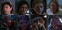 The transformation was broken up into seven distinct stages, with Jeff Goldblum spending many hours in the makeup chair for Brundle's later incarnations.[3]