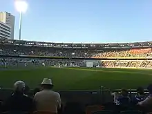 The work was largely completed by 11 April when the Bears hosted their first AFL game at the renovated venue against Melbourne in front of 12,821 spectators.[15] Subsequent further renovations at the ground saw the current two tier stands constructed in stages with the last stage completed in 2005 when the Brisbane Lions Social Club (formerly the Brisbane Bears Social Club) was demolished and replaced with a 24 bay grandstand spread over 3 levels of seating with the entire redevelopment costing $AU128 million.[16] In mid-2020 the Gabba received a $35 million refurbishment of the stadium's media and corporate facilities, as well as entrances and spectator amenities.[17] The work was completed in October that year, shortly before the venue hosted the 2020 AFL Grand Final.[18]