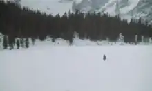 Location filming began in late 1967[16] in Cortina d'Ampezzo (Veneto) and San Cassiano in Badia (South Tyrol). Several Snow Hill scenes were shot on a set specifically built for the film, with log cabins and alpine roofs. Many of the surrounding hills were used for various set-pieces, including Loco's gang's hideout, the way station, the stagecoach route and the Snow Hill graveyard.[11] According to his autobiography Kinski Uncut, Kinski had an on-set affair with actress "Sherene Miller" during the Cortina shoot, while his wife Brigitte and daughter Nastassja enjoyed sledding in the snow.[11] Production then moved to southern areas of Italy; Silence's flashback to his childhood was shot at Bracciano Lake, near Manziana in Lazio. The Elios Film town set in Rome, which had previously been used by Corbucci in Django, was used for several Snow Hill scenes (including the final duel).[11][15][20]