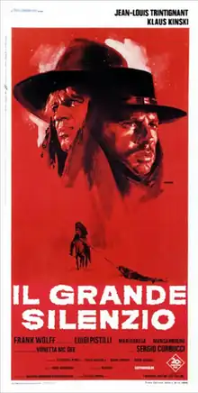 The Great Silence (Italian: Il grande silenzio) is a 1968 revisionist Spaghetti Western film directed and co-written by Sergio Corbucci. An Italian-French co-production, the film stars Jean-Louis Trintignant, Klaus Kinski, Vonetta McGee (in her film début) and Frank Wolff, with Luigi Pistilli, Mario Brega, Marisa Merlini and Carlo D'Angelo in supporting roles.
