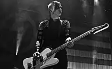 However, the following month, Manson encountered the band's former bassist, Jeordie White (aka Twiggy Ramirez), while staying at The Hollywood Roosevelt Hotel.[9] He had quit the band in 2002 as a result of creative differences during the recording sessions for their fifth studio album, The Golden Age of Grotesque (2003).[10] It was announced in January 2008 that Twiggy would be rejoining Marilyn Manson as live bassist for the rest of the "Rape of the World Tour",[11] which resulted in Sköld exiting the band.[12] Manson explained: "There's too much tension there [between Twiggy and Sköld]. Those two couldn't be on stage with each other."[13] Work began with Twiggy on new material in March 2008,[14] although future collaborations with Sköld were not ruled out.[12]