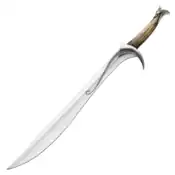 In the Shire, 50-year-old Bilbo is tricked by the wizard Gandalf the Grey into hosting a dinner for Thorin and his company of Dwarves: Balin, Dwalin, Fíli, Kíli, Dori, Nori, Ori, Óin, Glóin, Bifur, Bofur, and Bombur. Gandalf's aim is to recruit Bilbo as the company's "burglar" to aid them in their quest to enter the Lonely Mountain. Bilbo is unwilling to accept at first, but has a change of heart after the company leaves without him the next day, racing to join them. Travelling onward, the company is captured by three Trolls. Bilbo stalls the Trolls from eating them until dawn, and Gandalf exposes the trolls to sunlight, turning them to stone. The company locates the Trolls' cave and finds treasure and Elven blades. Thorin and Gandalf each take an Elf-made blade, Orcrist and Glamdring, respectively; Gandalf gives an Elven dagger to Bilbo.