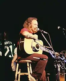 Following Crosby's departure, Gene Clark was asked to rejoin the band.[13] Clark had originally left the Byrds in early 1966 due to his fear of flying and his tendency towards anxiety and paranoia.[29] His debut solo album (co-produced by the Byrds' then current producer, Gary Usher, with both Clarke and Hillman playing on it) had been a critical success, but a commercial failure and Clark was currently inactive.[30] Clark rejoined the Byrds in October 1967 for three weeks, during which time he and the band performed on The Smothers Brothers Comedy Hour television program, lip-syncing "Goin' Back" and "Mr. Spaceman".[12] The Byrds also played several live dates with Clark during a tour of the Midwest.[12] Following the final concert of the tour, Clark's fear of flying again became a problem when it prevented him from taking a flight to New York with his bandmates and, as a result, he left the band soon after.[12]