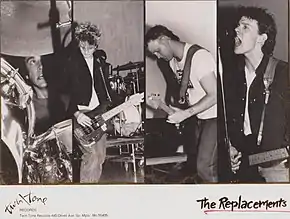 ![]() The Replacements in 1984; from left to right: Bob Stinson, Tommy Stinson, Chris Mars, Paul Westerberg | |