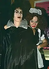 Blane was amazed by the recreation and understanding of her designs by fans.[30] When she first heard that people were dressing up, she thought it would be tacky, but was surprised to see the depth to which the fans went to recreate her designs. Rocky Horror fan Mina Credeur, who designs costumes and performed as Columbia for Houston's performance group, states that "the best part is when everyone leaves with a big smile on their face," noting that there's "such a kitschiness and campiness that it seems to be winking at you."[31] The film still plays at many theatre locations and Rocky Horror costumes are often made for Halloween, although many require much time and effort to make.[32]