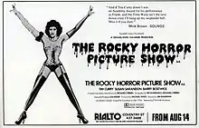 The film opened in the United Kingdom at the Rialto Theatre in London on 14 August 1975 and in the United States on 26 September at the UA Westwood in Los Angeles.[39][40] It did well at that location, but not elsewhere.[41] Before the midnight screenings' success, the film was withdrawn from its eight opening cities due to very small audiences, and its planned New York City opening on Halloween night was cancelled.[42] Fox re-released the film around college campuses on a double-bill with another rock music film parody, Brian De Palma's Phantom of the Paradise (1974), but again it drew small audiences.[42]
