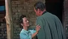 An important plot undercurrent is the obvious mutual attraction between Ethan Edwards and his brother's wife, Martha. Although no dialogue alludes to it, many visual references to their relationship are seen throughout the film.[41][42][43] Some critics have suggested that this unspoken passion implies that Debbie—who is specifically described as eight years old, as Ethan returns from an eight-year absence—may be Ethan's daughter. Such a situation would add further layers of nuance to Ethan's obsessive search for Debbie, his revulsion at the thought that she might be living as a Native American, and his ultimate decision to bring her home—and then walk away. Beyond the ostensible motivations, it might depict a guilt-ridden father's need to save the daughter he made by cuckolding his brother, then abandoned.[44]