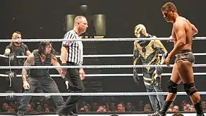 After TLC, despite continuing to attack Punk's and Maddox's adversaries such as Ric Flair,[47] Brodus Clay[48] and Sheamus,[49] The Shield soon expanded their ambushes to other wrestlers, such as Mick Foley,[25] Tommy Dreamer and Ricardo Rodriguez.[50] The Shield's attacks were also used to write off wrestlers from television via injury angles, such as Randy Orton and Sin Cara, who were already suffering from legitimate injuries.[51][52]
