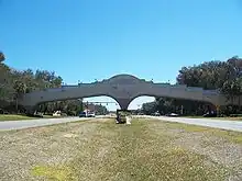 Fictitious historical markers and architectural details provide an atmosphere for the residents. Amanda Brian, author of "The Faux History of The Villages, Florida," wrote, "The Villages' faux history gives a patina of stability and continuity to a highly volatile region and stage of life."[67][68] Many plaques represent the "downtown areas" as if events derived from notions of an idyllic small town in the 1800s had occurred there.[69] Such "American myths" feature in the designs for Brownwood, Lake Sumter Landing, and Spanish Springs.[70]
