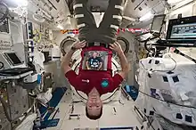During this mission, Pesquet performed 4 EVAs. The first three EVAs were conducted with Shane Kimbrough on the 16, 20, and 25 of June with the tasks to install the first two Roll Out Solar Arrays (iROSA) on the station.[23][24] The fourth EVA was originally planned to be performed by Akihiko Hoshide and Mark Vande Hei but due to a medical issue for Vande Hei, Pesquet exited for the sixth time of his career the ISS to perform a spacewalk.[25] During this spacewalk, he became the European record holder for most cumulative hours spent spacewalking, with a total of 39 hours and 54 minutes.