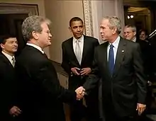 On April 6, 2006, Coburn and Senators Barack Obama, Thomas Carper and John McCain introduced the Federal Funding Accountability and Transparency Act of 2006.[106] The bill requires the full disclosure of all entities and organizations receiving federal funds beginning in fiscal year (FY) 2007 on a website maintained by the Office of Management and Budget. The bill was signed into law on September 26, 2006.[107]