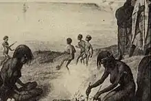 Living in tents, the Wills family settled a large property named Lexington (near present-day Moyston) in an area used by Djab wurrung Aboriginal clans as a meeting place.[15] According to family members, Tom, as one of the few white children in the area, "was thrown much into the companionship of aborigines".[16] In an account of corroborees from childhood, his cousin H. C. A. Harrison[c] remembered Tom's ability to learn Aboriginal songs, mimic their voice and gestures, and "speak their language as fluently as they did themselves, much to their delight."[17] He may have also played Aboriginal sports.[18] Horatio wrote fondly of his son's kinship with Aboriginal people, and allowed local clans to live and hunt on Lexington.[19] However, George Augustus Robinson, the district's Chief Protector of Aborigines, implicated Horatio and other local settlers in the murder of Aboriginal people. Horatio blamed "distant predatory tribes" for provoking hostilities in the area, and the closest he came to admitting that he had killed Aboriginal people was in a letter to Governor Charles La Trobe: "... we shall be compelled in self defence to measures that may involve us in unpleasant consequences".[20]