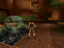 The atmosphere and puzzle design deliberately harkened back to the design principles of the original Tomb Raider.[12] The puzzle elements focused back on the solving of problems rather than exploring large environments for keys as had been happening in earlier sequels.[17] Several elements, such as the UI menus and the opening tutorial level, were entirely redesigned so the game would act as a reintroduction of the character to players.[12][17][20] In addition to new moves, Lara's existing moveset and animations were tweaked to be easier for players to activate.[21] The targeting system was improved so Lara would lock into enemies within range and could toggle between them. In addition, the enemy AI was reworked to be more reactive and strategic.[20] Speaking on the companion AI, Sandham remembered it being difficult to program effectively as it was a new feature in gaming at the time.[16] While a multiplayer option was considered, it was rejected due to time and resource limits.[18] A separate tutorial area was similarly removed to reduce workload, with tutorial elements instead incorporated into the opening levels.[16]