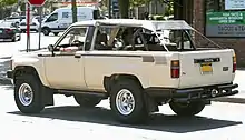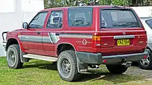 The Trekker was a similar "walk-through" third-party conversion of the short-bed Toyota Hilux truck, built by Winnebago Industries from 1981 to 1983. Winnebago removed the rear wall and added a bench seat in the bed, protecting these occupants by a permanently-fixed fiberglass shell;[6] in concept, it was similar to the Chevrolet K5 Blazer. The Trekker competed with similar third-party limited production Toyota conversions including the Breaker-Breaker and Trailblazer.[7] The Trekker was discontinued in 1984 once Toyota started producing and selling the 4Runner SUV; these third-party conversions had in essence acted as marketing test vehicles for the 4Runner.[8][9]