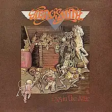 Toys in the Attic is the third studio album by American rock band Aerosmith, released on April 8, 1975, by Columbia Records.[1] Its first single, "Sweet Emotion", was released on May 19 and the original version of "Walk This Way" followed on August 28 in the same year.[2] The album is the band's most commercially successful studio LP in the United States, with nine million copies sold, according to the RIAA.[3] In 2003, the album was ranked No. 228 on Rolling Stone's list of The 500 Greatest Albums of All Time.[4] The album's title track and their collaboration with Run-DMC on a cover version of "Walk This Way" are included on the Rock and Roll Hall of Fame list of the "500 Songs that Shaped Rock and Roll".[5]
